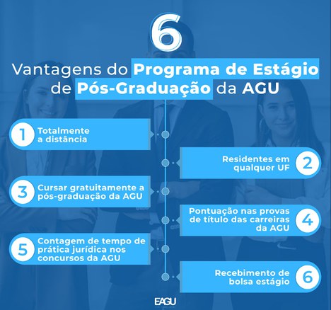 Estudantes graduados em Direito e regularmente matriculados em cursos de pós-graduação lato ou stricto sensu, na área jurídica, terão uma oportunidade única: no próximo dia 28/10, a Escola da AGU lançará edital para o Programa de Estágio de Pós-Graduação em Direito, por meio do qual os interessados poderão vivenciar, na prática, as atividades da Advocacia-Geral da União.