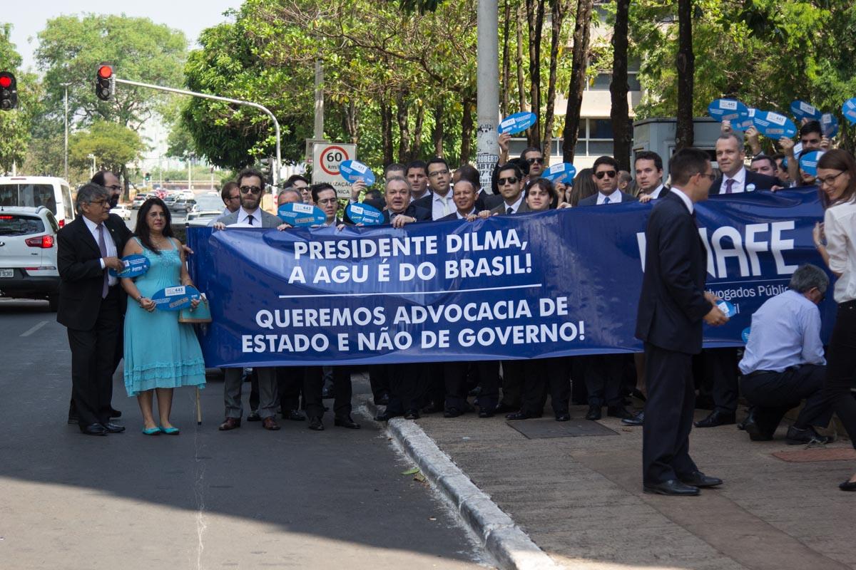 Às 11:30, o movimento passou para a frente do Palácio do Planalto, em protesto à inércia do governo à concretização de nossos pleitos, com um ato simbólico de entrega de 1.500 cargos em comissão, o que representaria para o erário da economia de cerca de 100 milhões de reais.